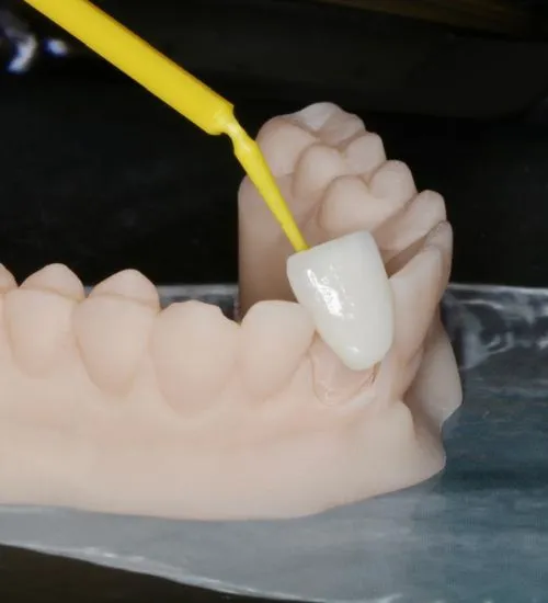 Lâminas ultrafinas de porcelana ou resina aplicadas sobre os dentes para harmonizar forma, cor e imperfeições, preservando a estrutura natural do sorriso.