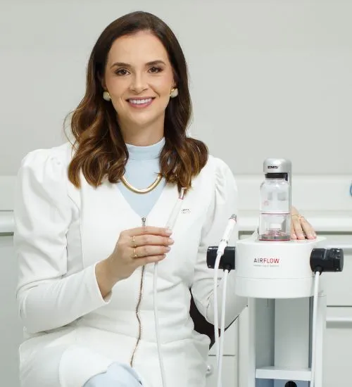 Nosso protocolo com Airflow foi desenvolvido para tornar a prevenção e a limpeza dental mais confortáveis, eficientes e seguras. A tecnologia utiliza um jato controlado de ar, água morna e partículas ultrafinas, removendo biofilme e manchas de forma delicada, sem agredir o esmalte ou a gengiva.